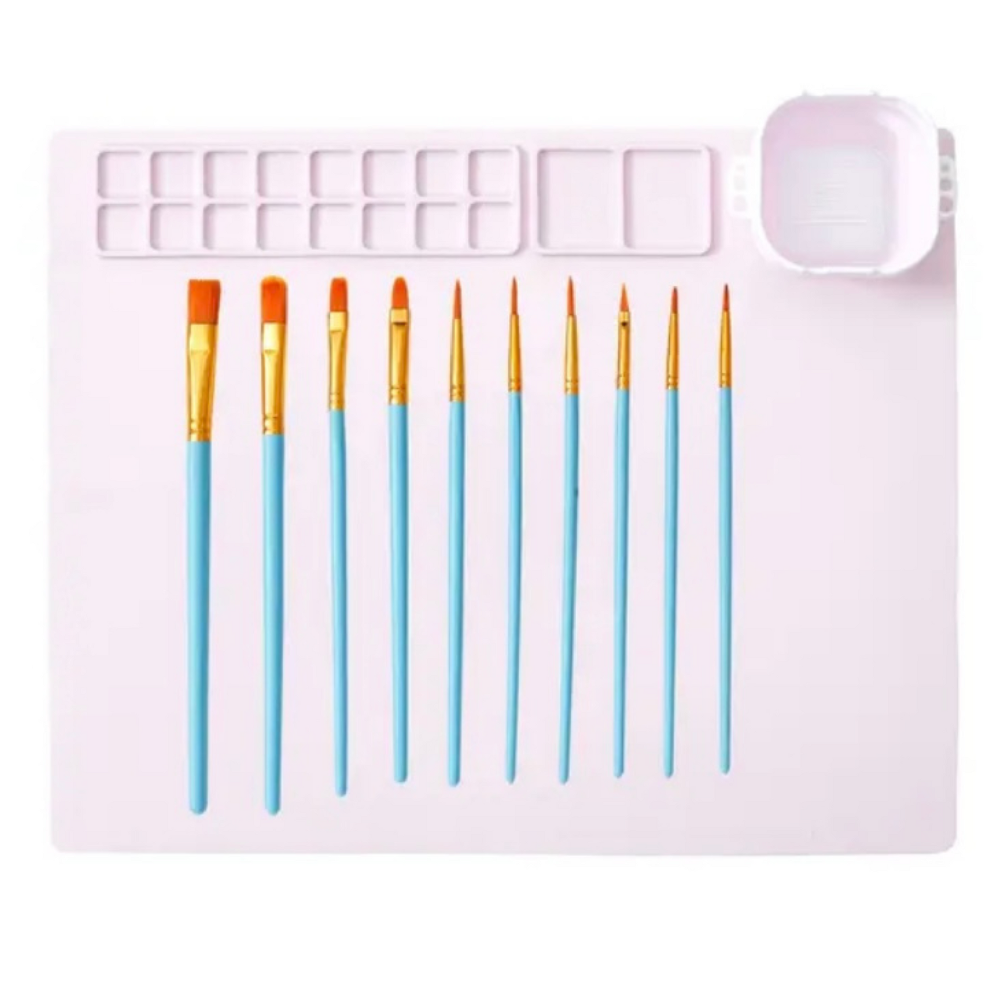 Kid's Washable Silicone Painting Mat with Paint Brushes