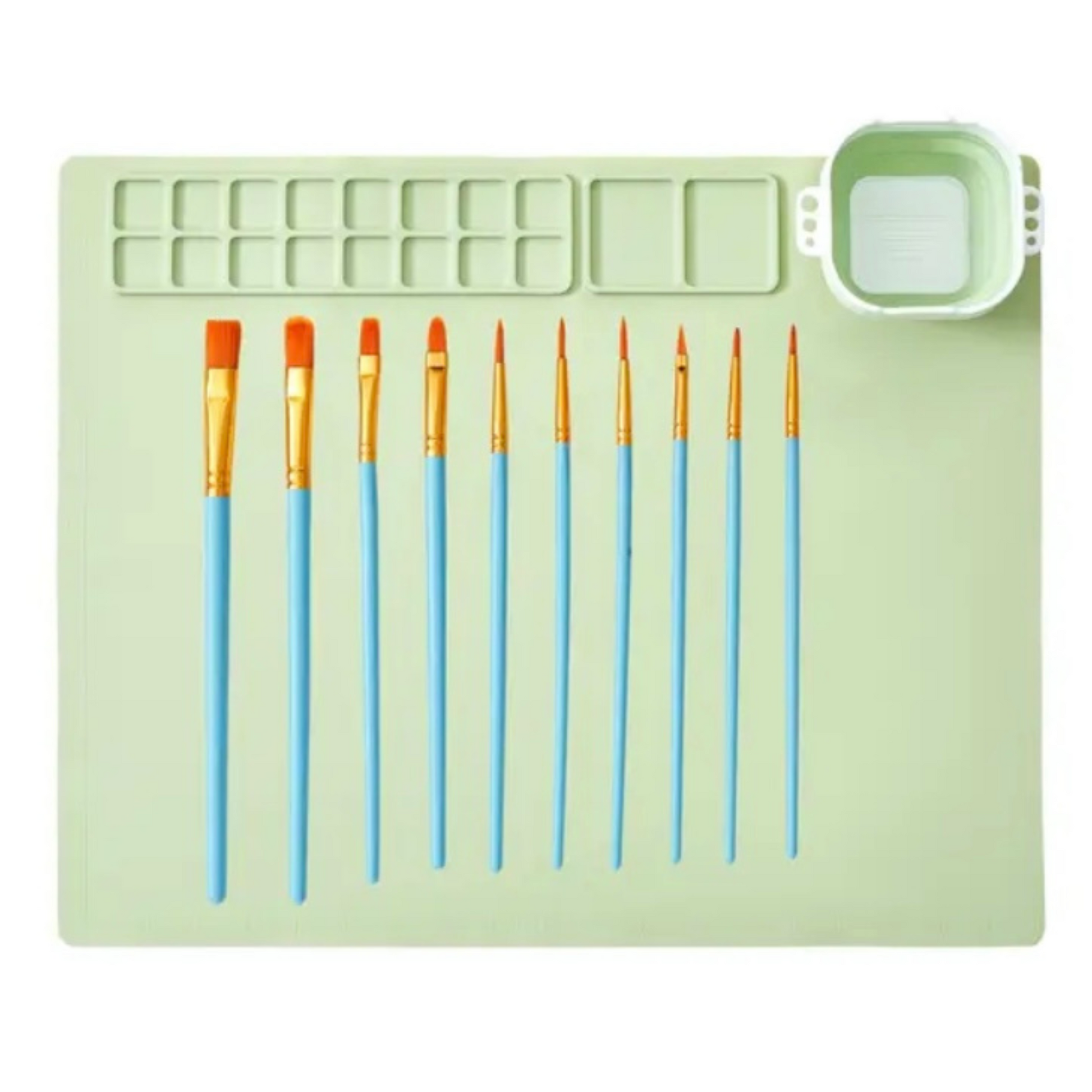 Kid's Washable Silicone Painting Mat with Paint Brushes - Green
