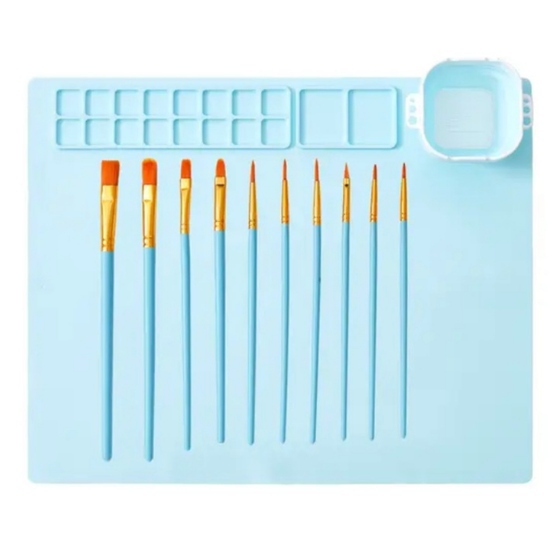 Kid's Washable Silicone Painting Mat with Paint Brushes - Blue